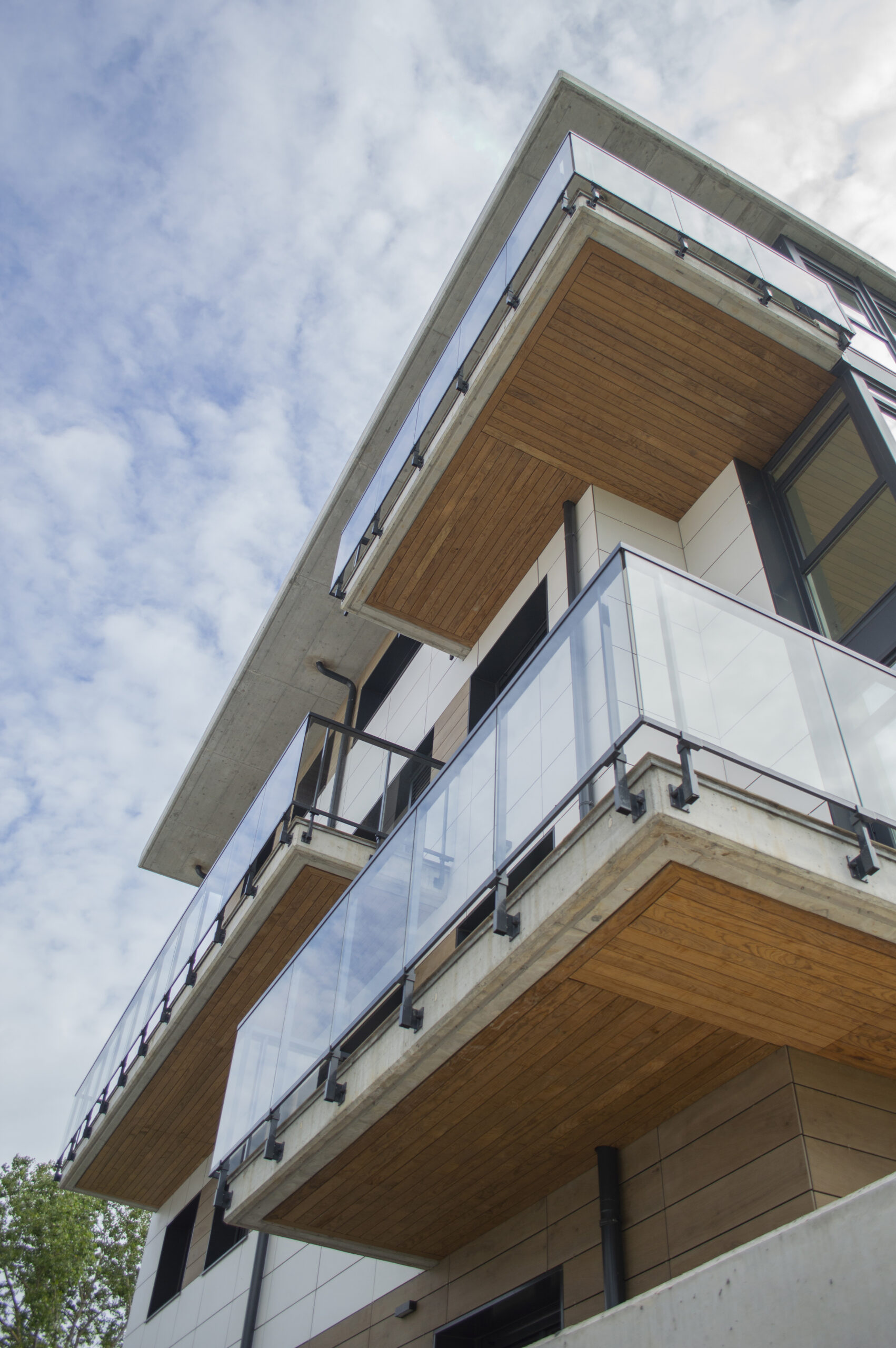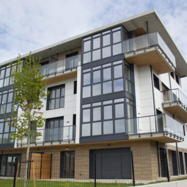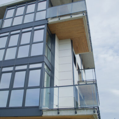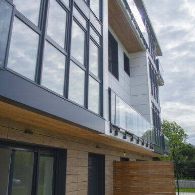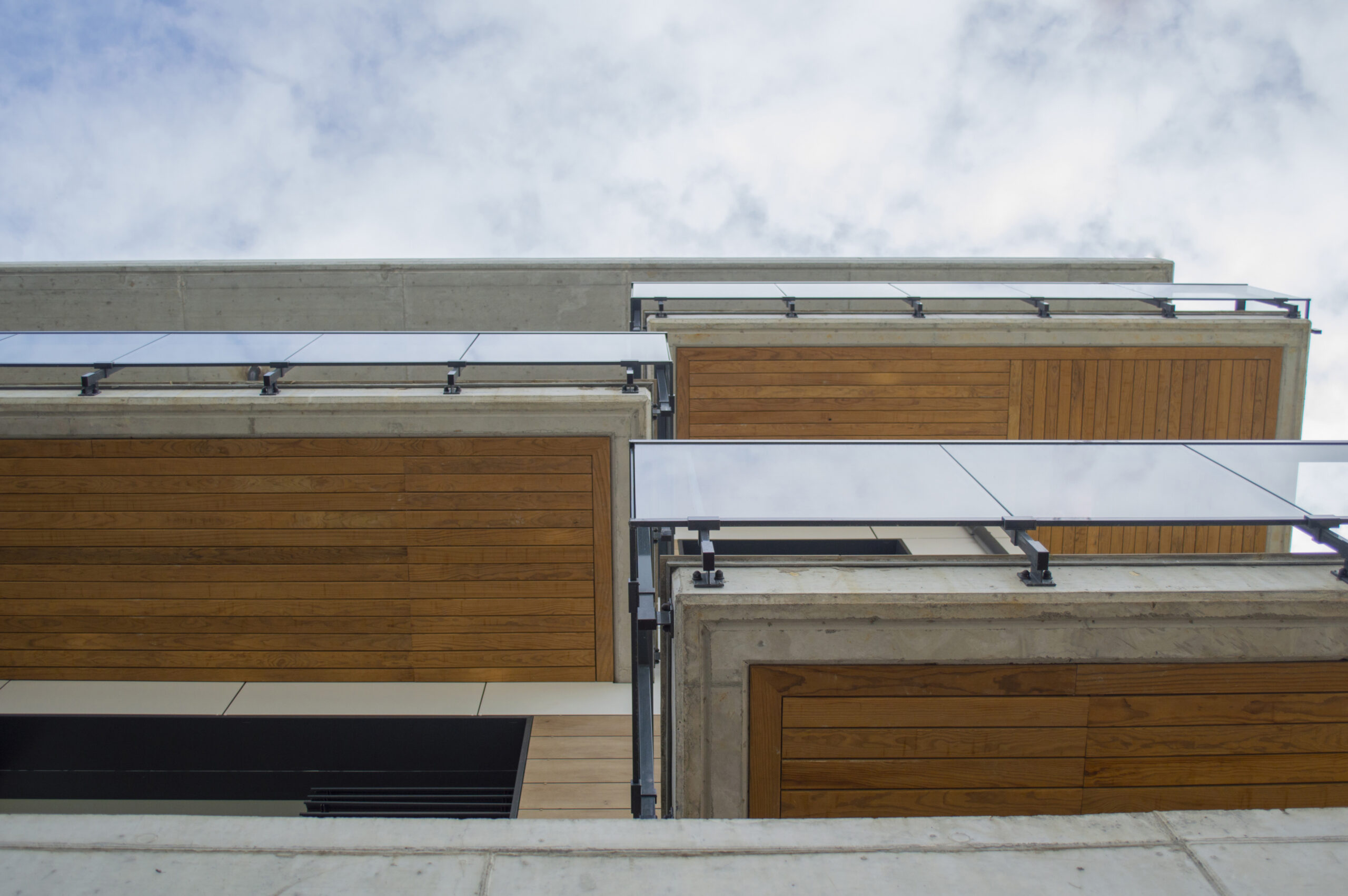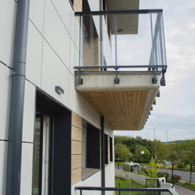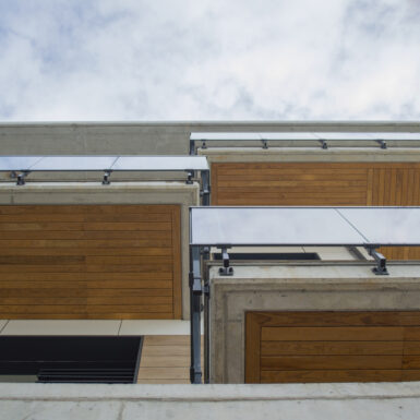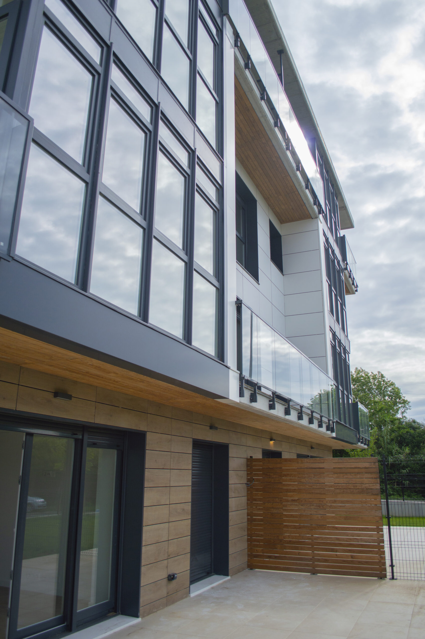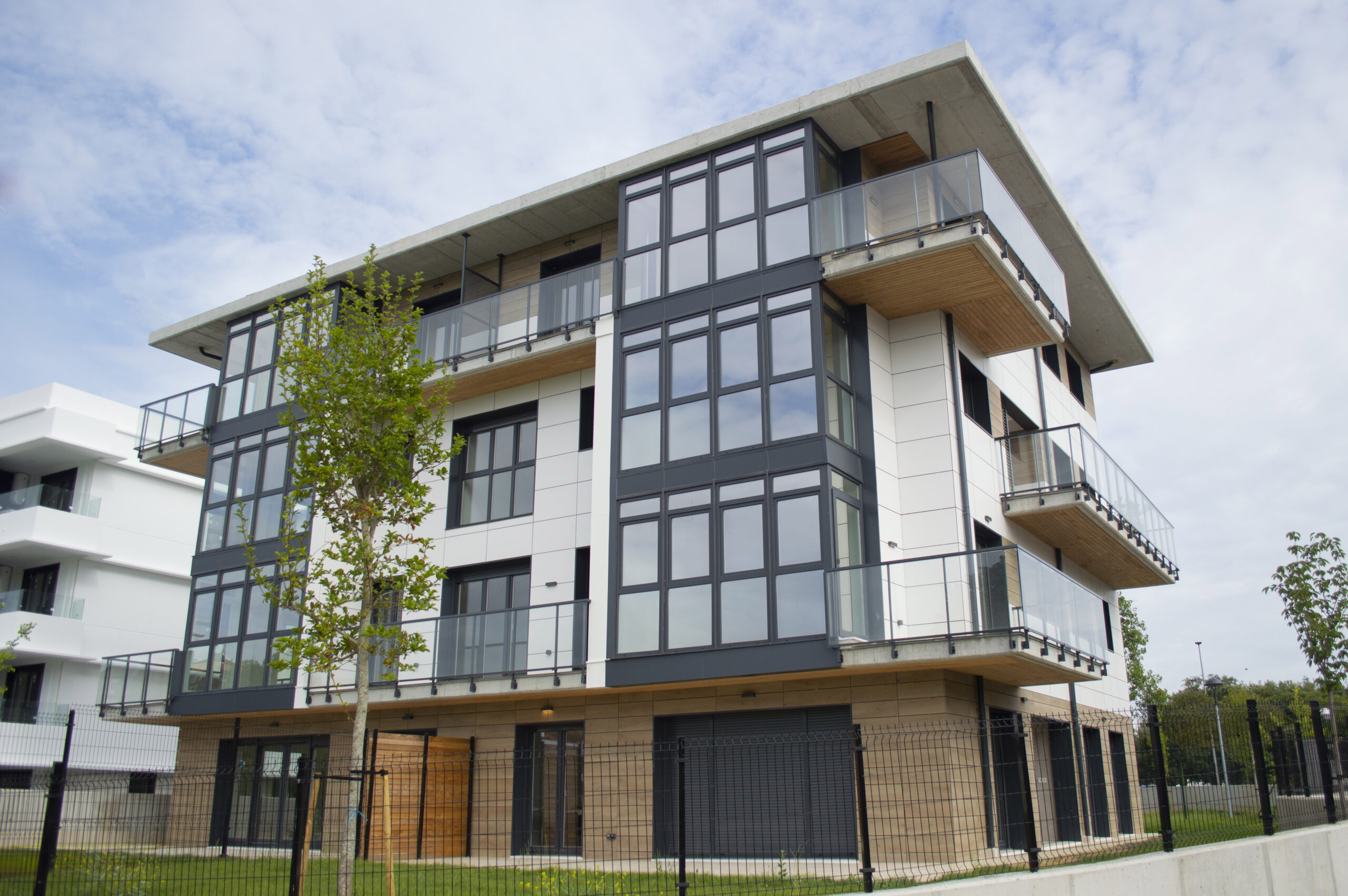 Beste aldetik batetik, kanpoko irudian, akaberak eraikinaren eskalari moldatzen saiatu gara, bolumetria konpaktua terrazen eta estalkiaren boladizoarekin apurtuz. Akaberetan, hormigoiaren eta zeramikaren elementu neutroak, itxura beroagoa dutenekin konbinatzen dira, fatxaden egur imitazioa edo terrazen sabaien zur natural termotratatuarekin.